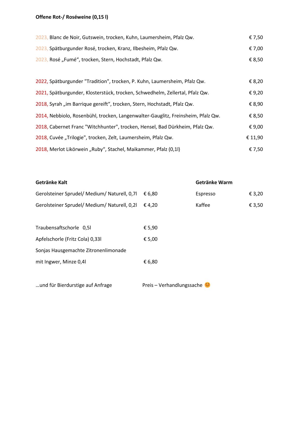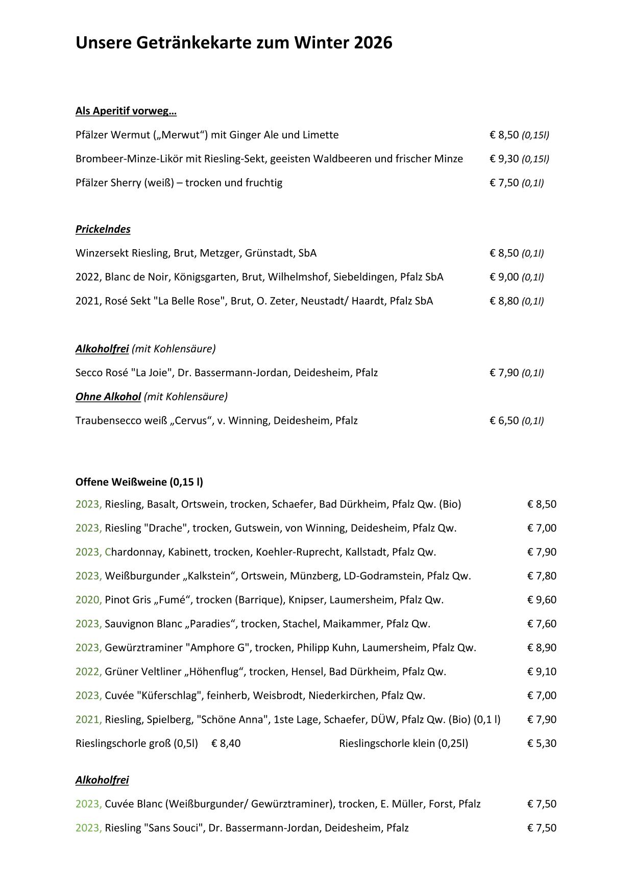Aktuelle Weinkarte